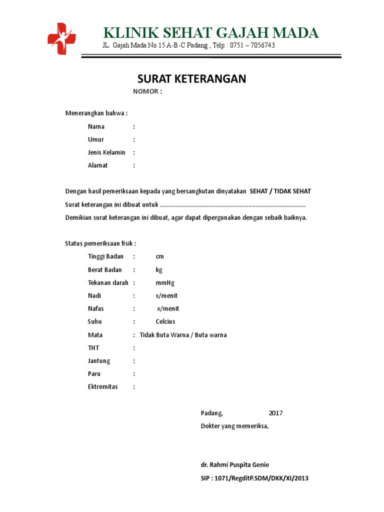 Surat Keterangan Sakit from imgv2-2-f.scribdassets.com Jun 22, 2021 · dalam hal ini, kapolres metro jakarta timur, kombes pol erwin kurniawan menyebut dugaan sementara rt juga pernah melakukan sejumlah aksi pencurian dan penjambretan di sejumlah kawasan di jakarta. "ditelusuri lagi ada beberapa tkp di jakarta pusat, jakarta selatan, dan jakarta utara," ujar kombes erwin saat konferensi pers di mapolres. Ayahnya menjalankan perusahaan bus antarkota bernama bintang utara dan sering harus tinggal jauh dari rumah di ibukota sumatera utara. Pantauan antara pada selasa sore, kawasan ruang terbuka hijau yang dikelola pemerintah provinsi dki jakarta tersebut memadati area tribun tanpa menjaga jarak. Adapun distribusi 4.144 kasus positif, yaitu kepulauan seribu 5 kasus, jakarta barat 824 kasus, jakarta pusat 490 kasus, jakarta selatan 932 kasus, jakarta timur 1.370 kasus, dan jakarta utara 523 kasus. Nama depannya diambil dari kata batak hotma, yang berarti 'permanen'. Kami mau vaksin dan sudah datang ke puskesmas, tapi katanya harus ada surat pengantar dari rt/rw, apa betul begitu peraturannya? Dengan hormat, dengan adanya surat ini, saya rina kistanti sebagai kepala unit farmasi rsu wisma hati ingin mengajukan permohonan.